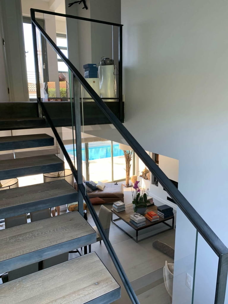 Enfin le garde corps a été réalisé en verre pour finaliser l’aspect contemporain de cet ouvrage.