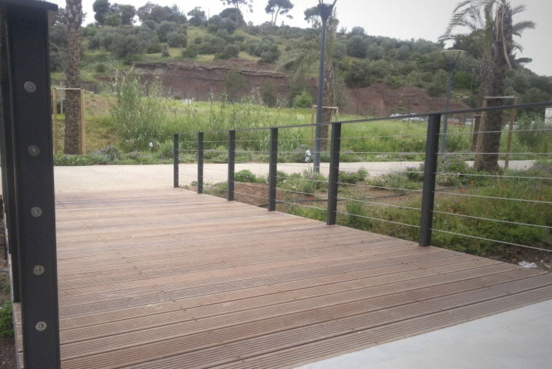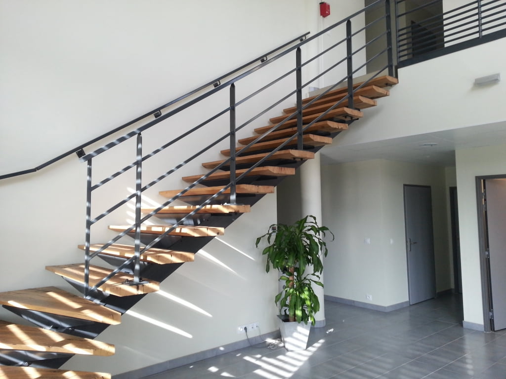 Garde-Corps en acier à lisses horizontales. Main courante fixée au mur. L’ensemble laqué selon choix RAL du client.